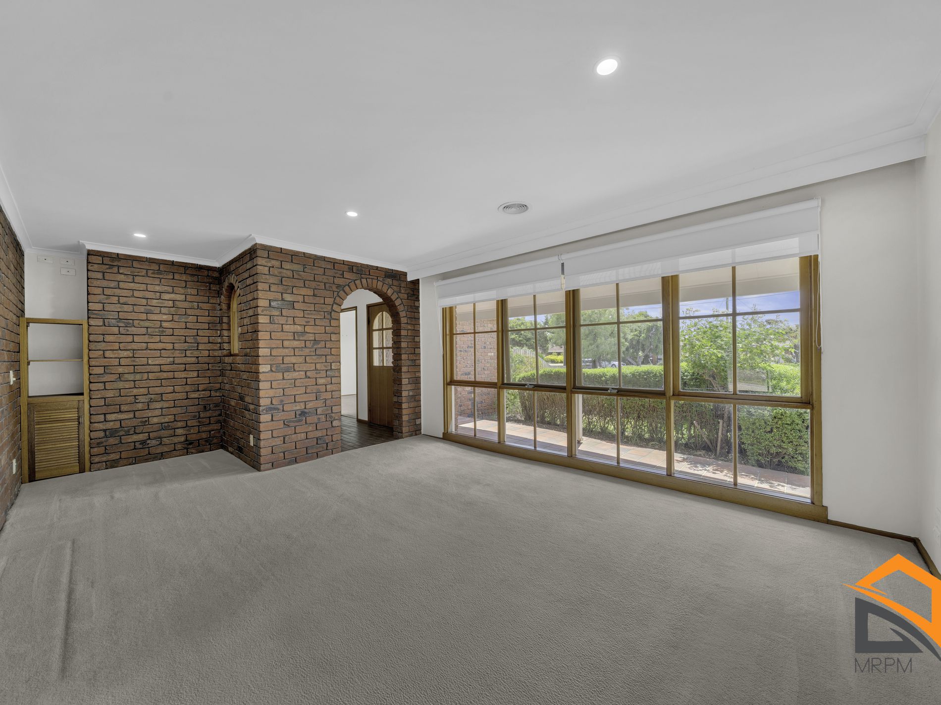 The formal lounge has floor to ceiling windows allowing an abundance of light and brick feature walls .